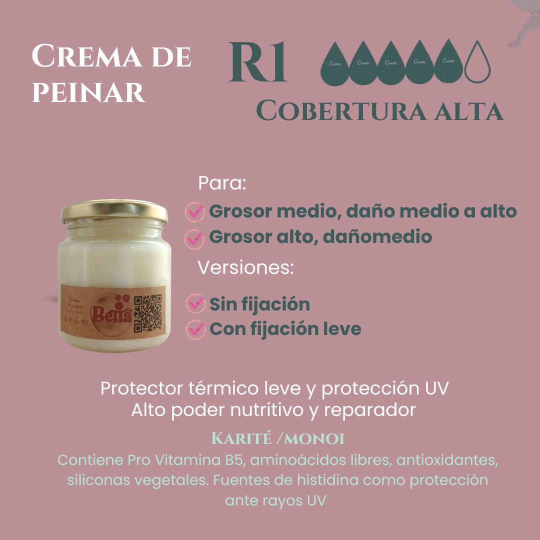 Crema de peinar de increíble cobertura, de textura cremosa y suave que permite un modelado efectivo y armonioso de tus ondas/rulos, a la vez que nutre intensa y progresivamente, hidrata, humecta y repara. No contiene proteínas. Otorga protección térmica* en tu secado (aunque esperamos que no uses ni abuses de las altas T°s). Como todos los productos Betta, tiene la particularidad de aportar muchísimo brillo a tu cabello.